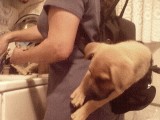 Our German Shepard takes a sniff. |